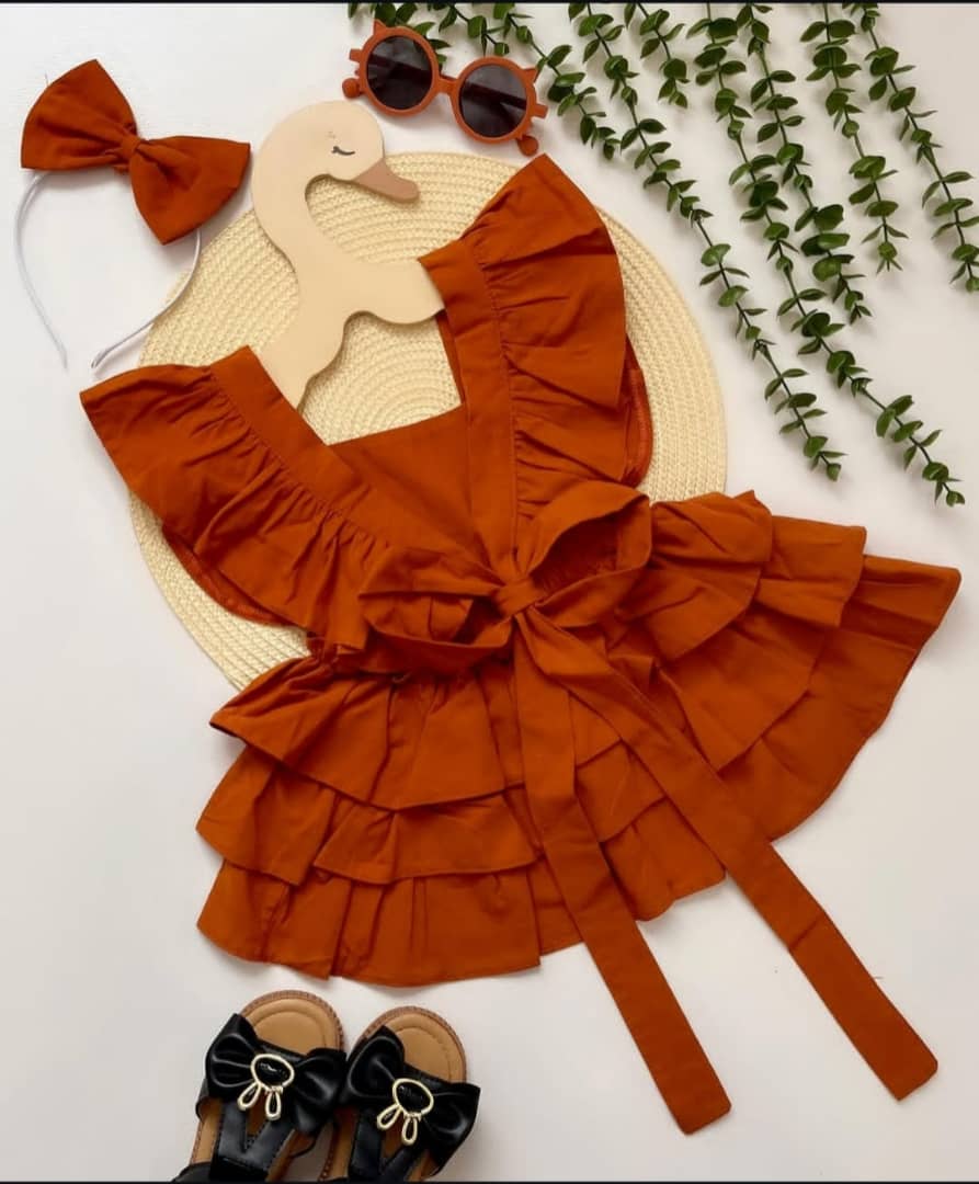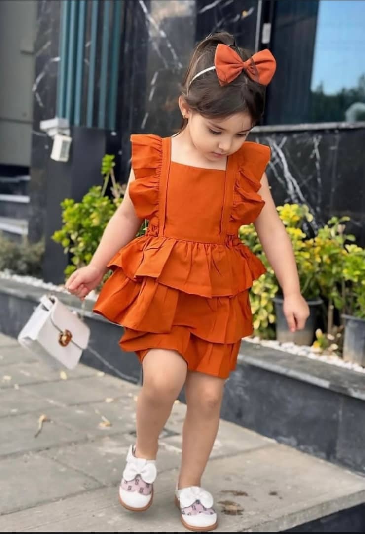 طراحی خاص، خنک و راحت، مناسب دختران ۱ تا ۷ سال. در دو رنگ جذاب: نارنجی و کرم 💛🧡